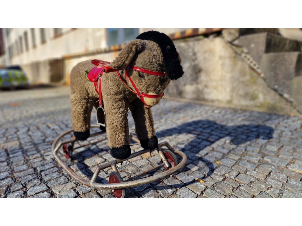 Houpací a jezdící oslík Íáček, retro hračka - NEPRODEJNÝ EXPONÁT