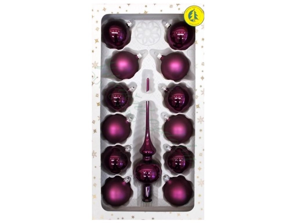 Sada vánočních ozdob Tmavě fialová enzián - sada skleněných vánočních ozdob, koule se špicí