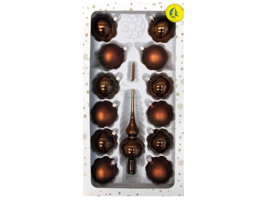 Sada koulí se špicí Tmavě hnědá - sada skleněných vánočních ozdob, koule se špicí
