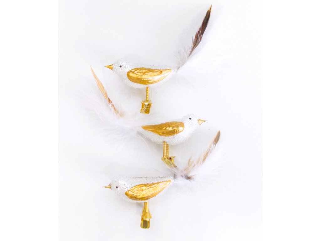 Sada vánočních ozdob Bílý ptáček se zlatými křídly - skleněná vánoční ozdoba ve tvaru ptáček.