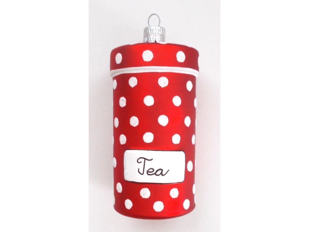 Sada vánočních ozdob Dóza na čaj červená - skleněná vánoční ozdoba ve tvaru dózy, na zavěšení. Ruční skleněná vánoční ozdoba.