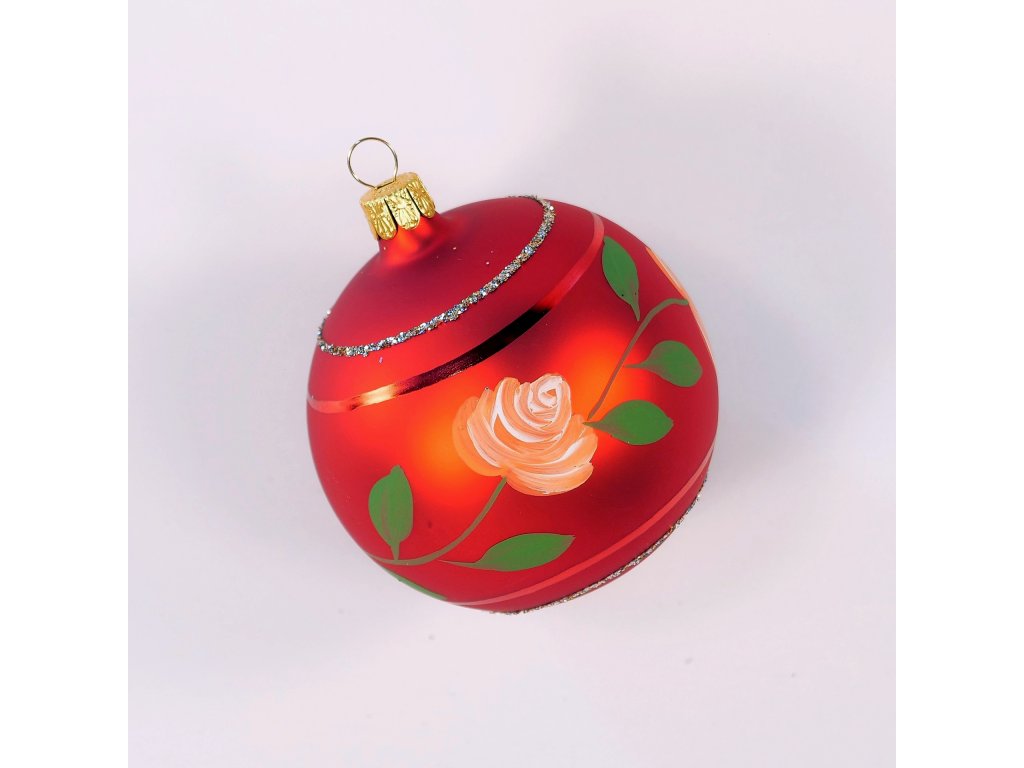 Sada vánočních ozdob koule červená matná s růžemi - skleněná vánoční ozdoba, ve tvaru koule, barva tmavě červená matná s růžemi.