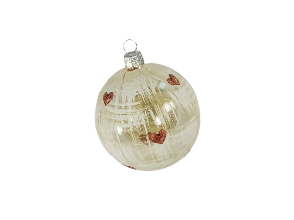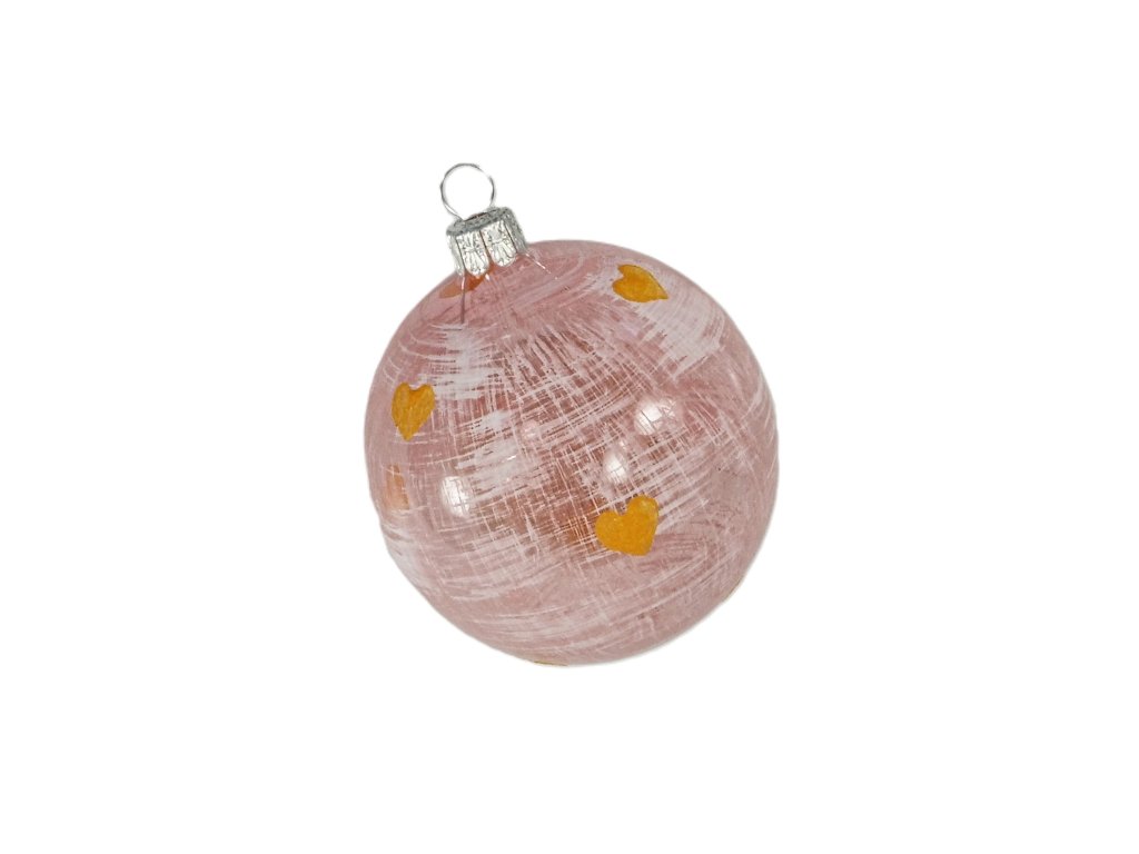 Sada vánočních ozdob Koule průhledná růžová a světle žlutá s čerchováním a srdíčky - skleněná vánoční ozdoba koule, průhledná s čerchováním a srdíčky.