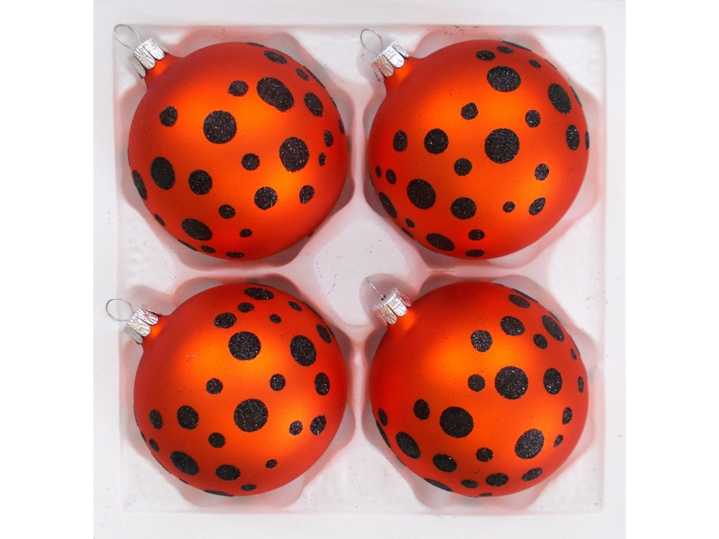 Vánoční ozdoba Koule puntíkatý pomeranč /8 - sada 4 kusů