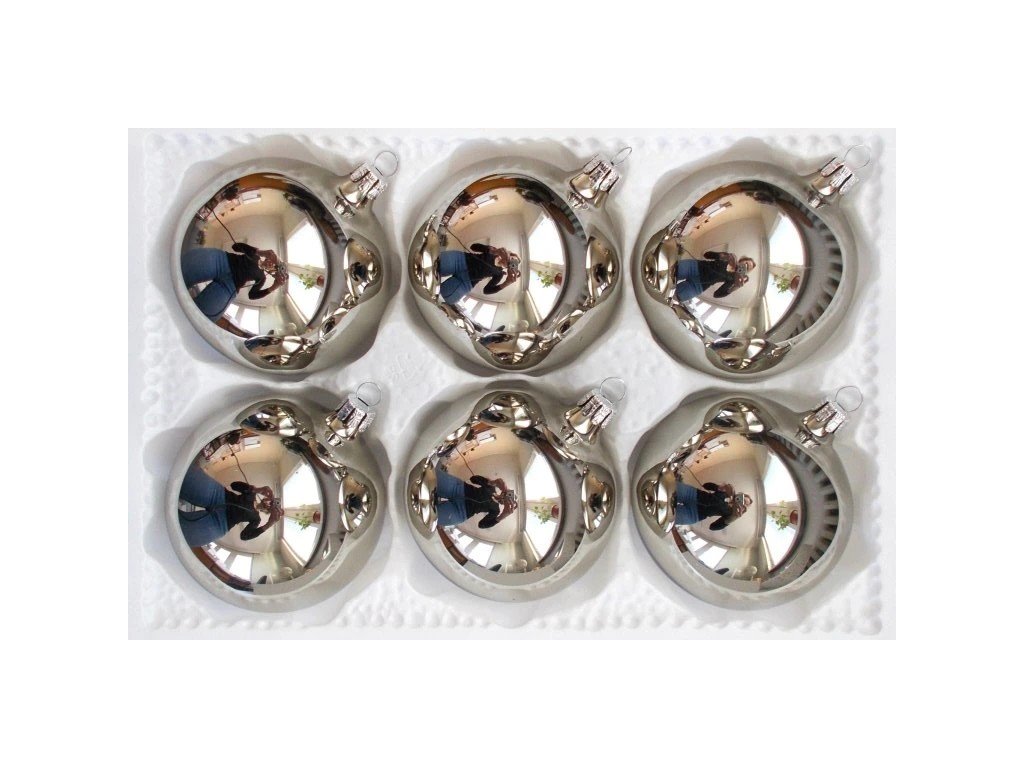Vánoční ozdoba Koule světle šedá lesk /8 - sada 6 kusů