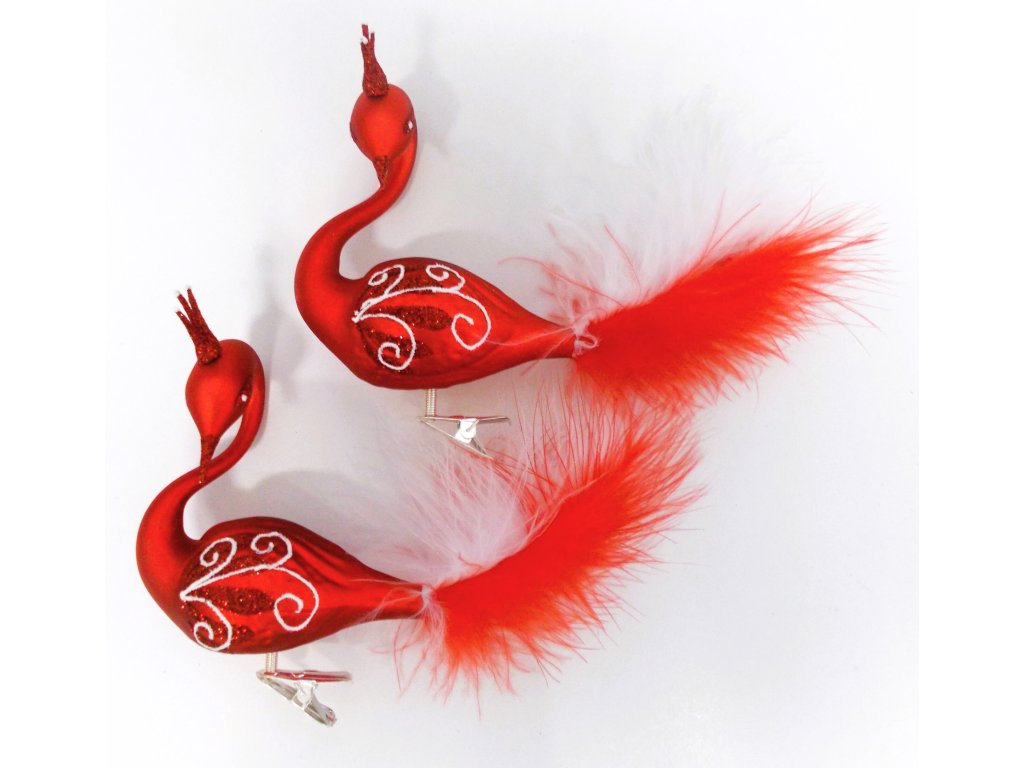 Sada vánočních ozdob Labuť tmavě červená - skleněná vánoční ozdoba ve tvaru labutě.