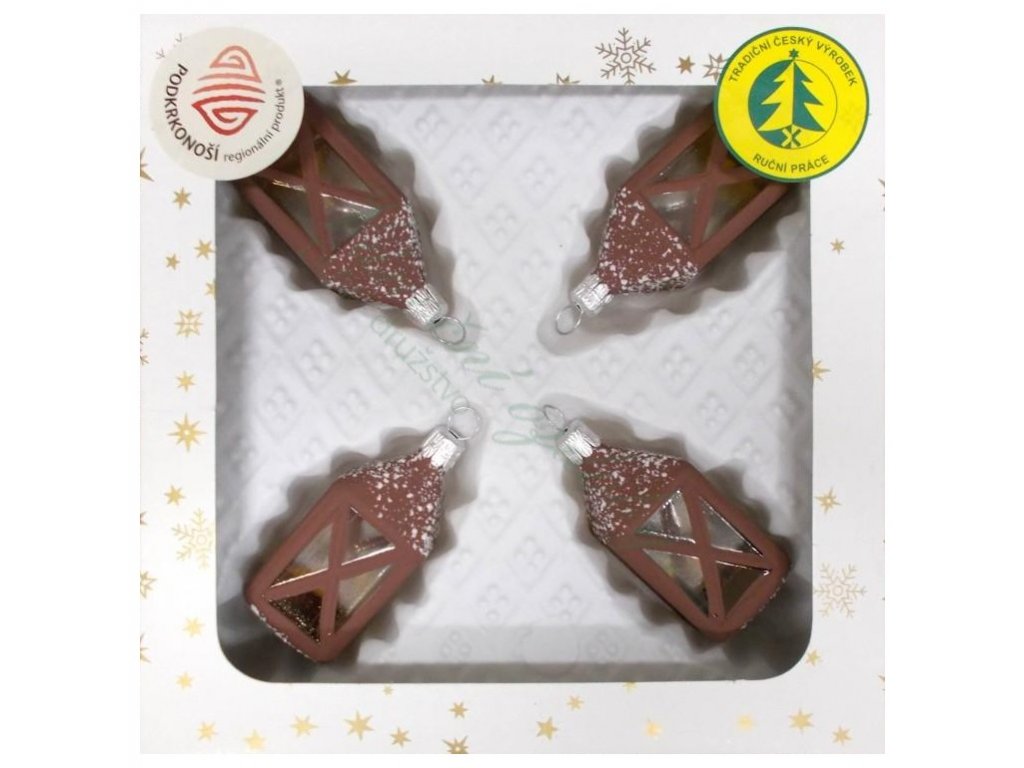 Sada vánočních ozdob Lucerna hnědá - skleněná vánoční ozdoba ve tvaru lucerny v hnědé barvě, určena pro zavěšení. Ruční skleněná vánoční ozdoba.
