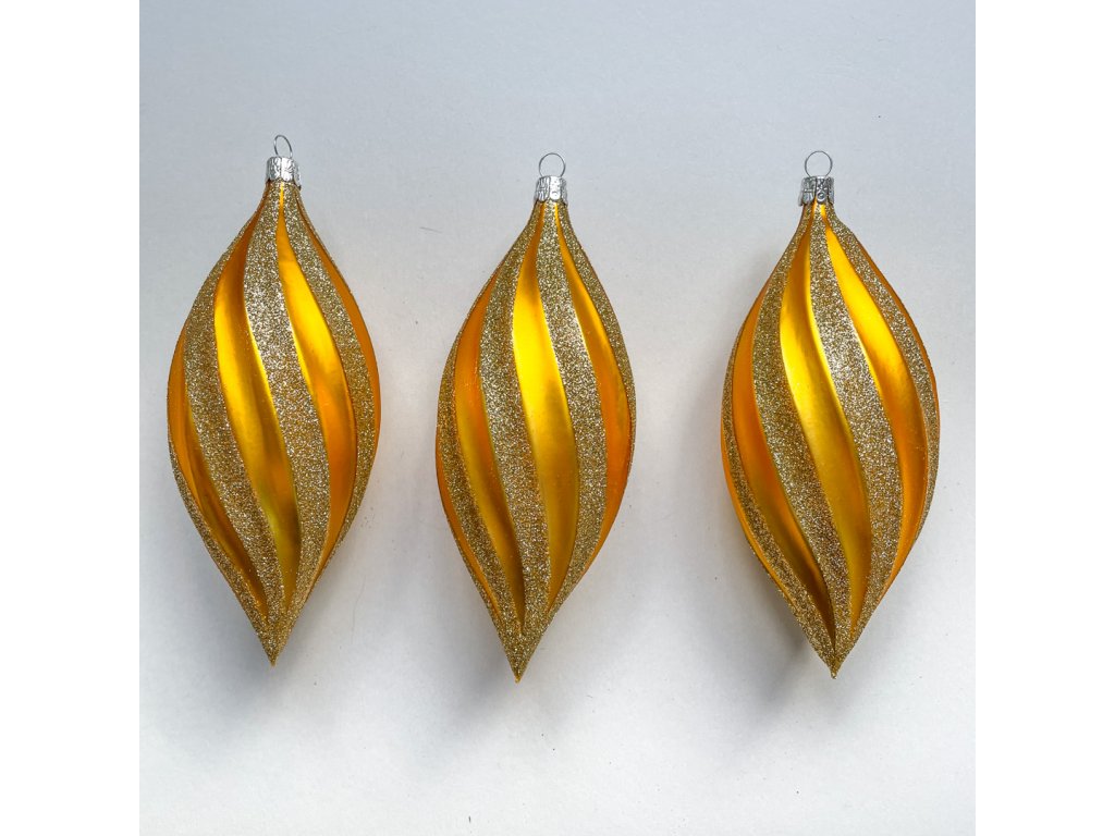 Sada vánočních ozdob Oliva kroucená, Zlatá - skleněná vánoční ozdoba ve tvaru olivy