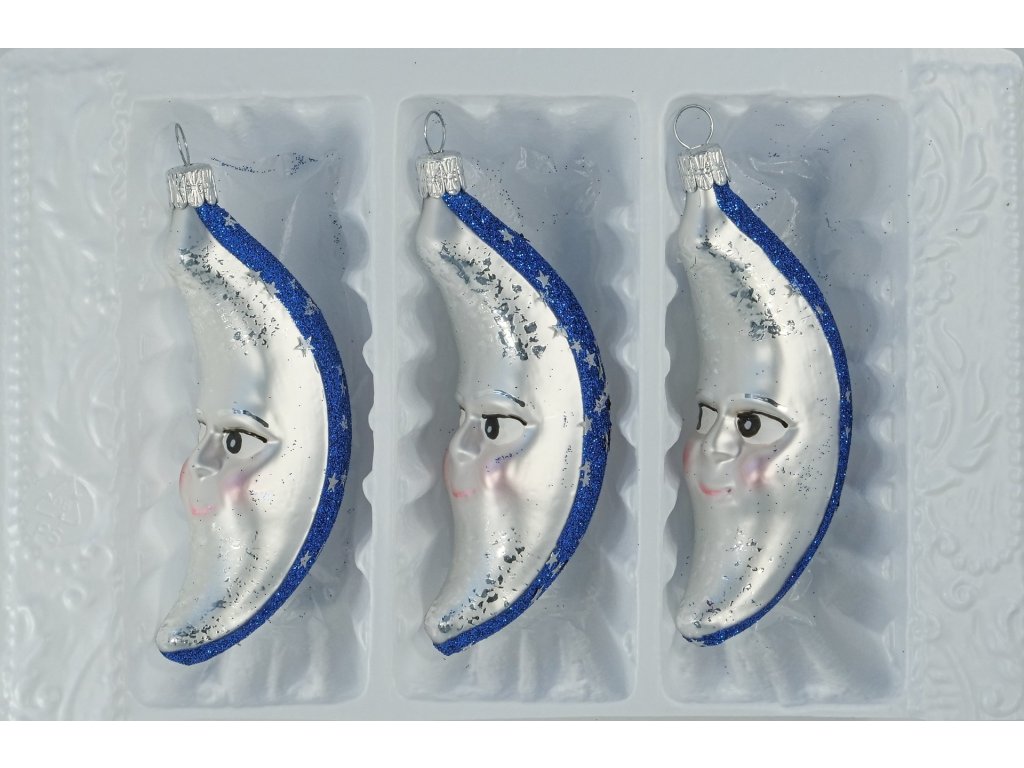 Sada vánočních ozdob půlměsíc stříbrno-modrý s obličejem