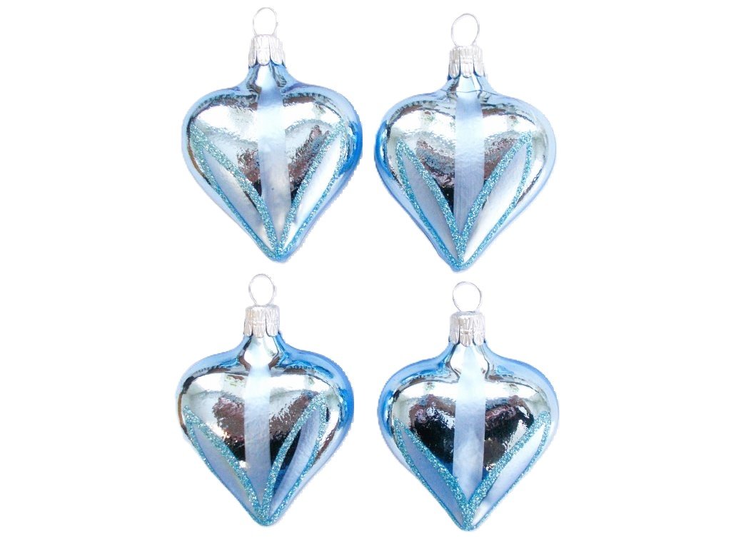 Sada vánočních ozdob Srdce blankytně modré se vzorem - skleněná vánoční ozdoba ve tvaru srdce, barva blankytně modrá lesk. Vánoční ozdoba na zavěšení.