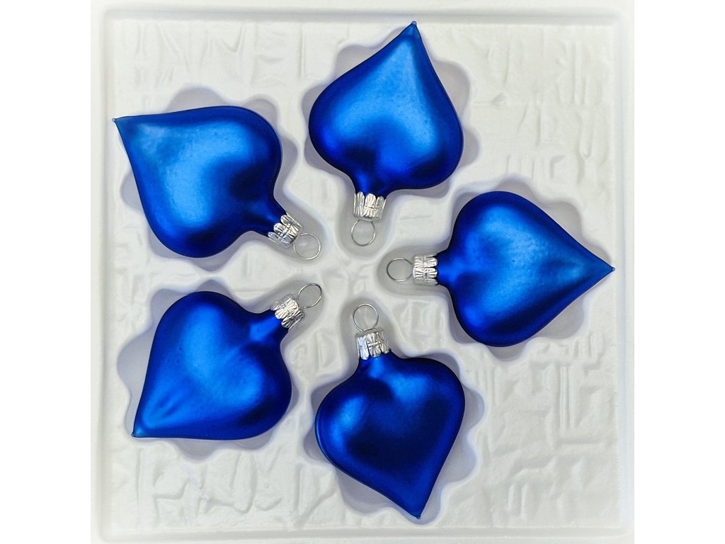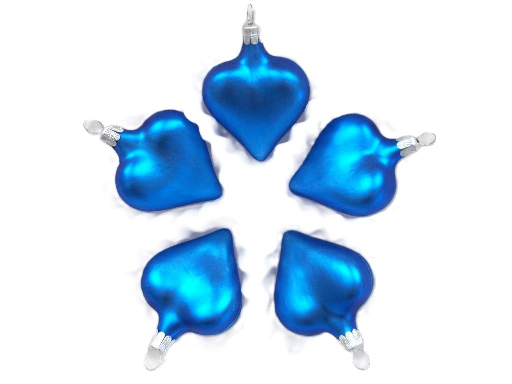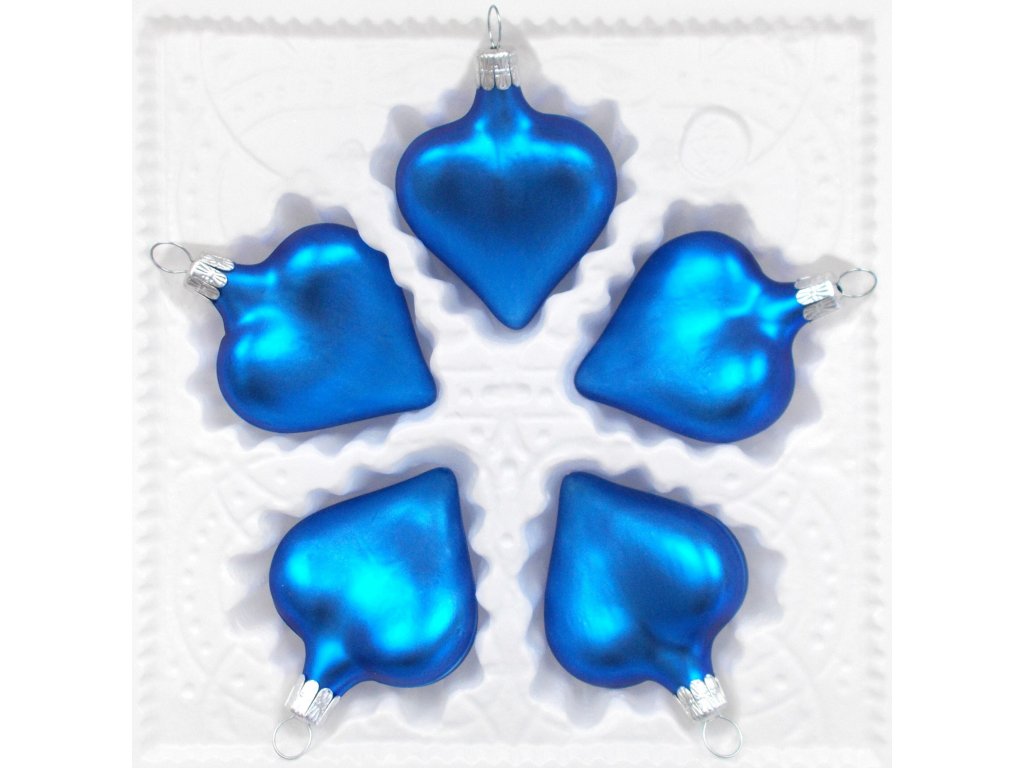 Vánoční ozdoba Srdíčko modré matné - sada 5 kusů