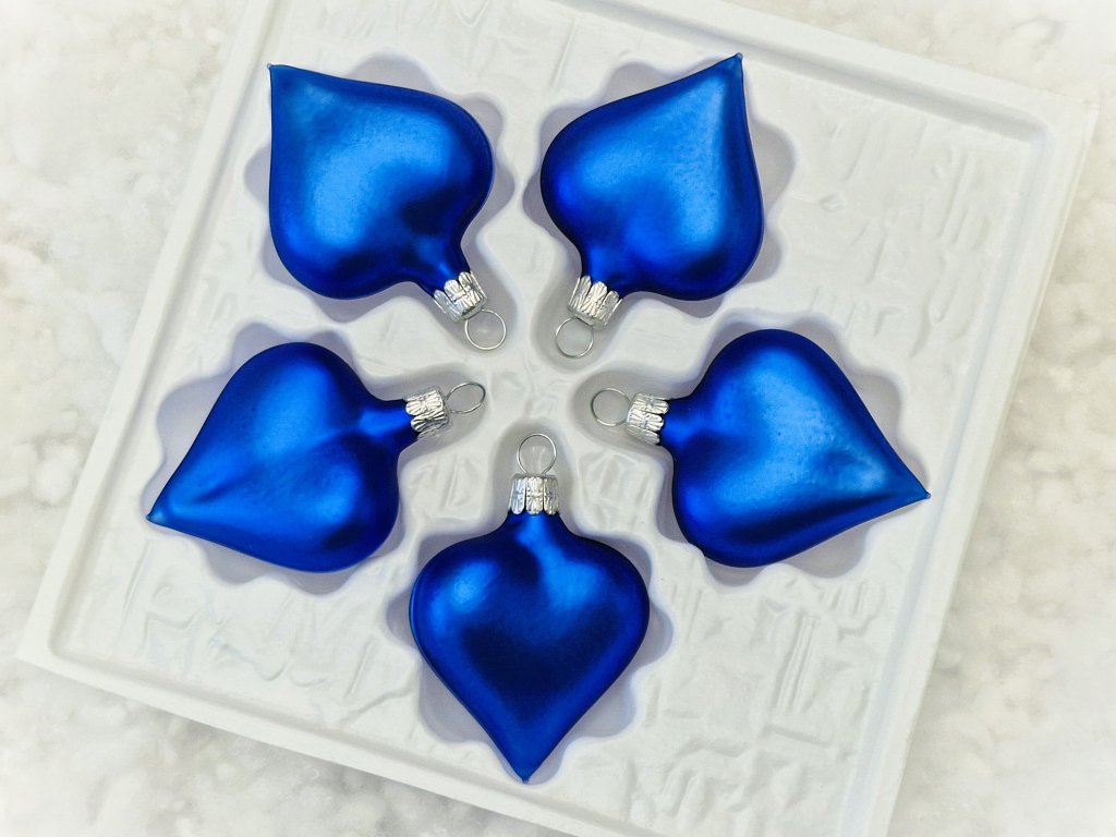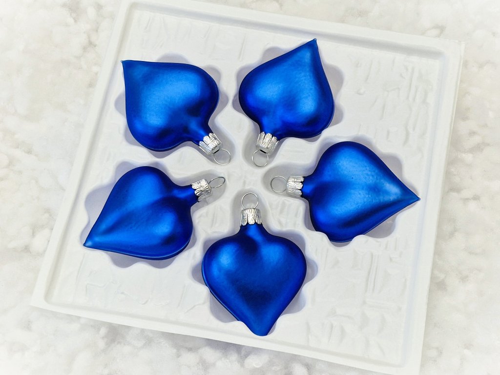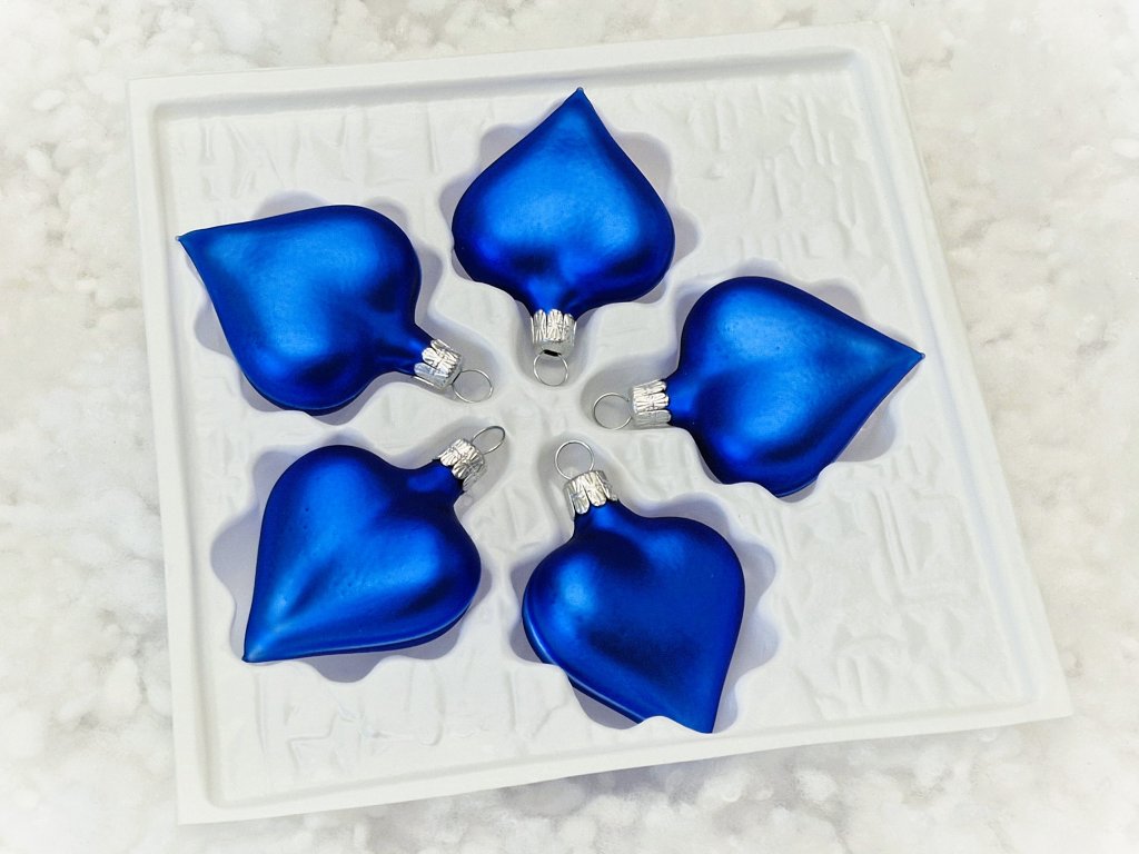 Sada vánočních ozdob Srdce matná modrá - skleněná vánoční ozdoba, ve tvaru srdce, barva matná modrá. Vánoční ozdoba na zavěšení.
