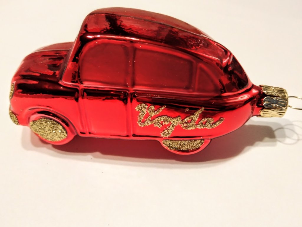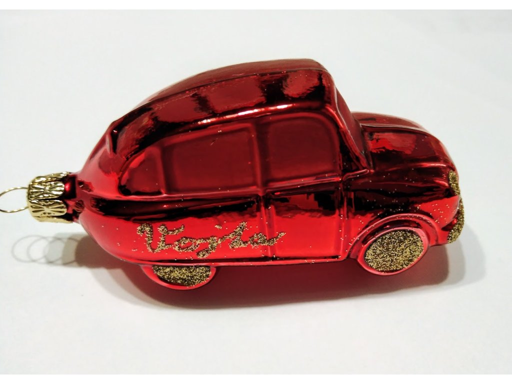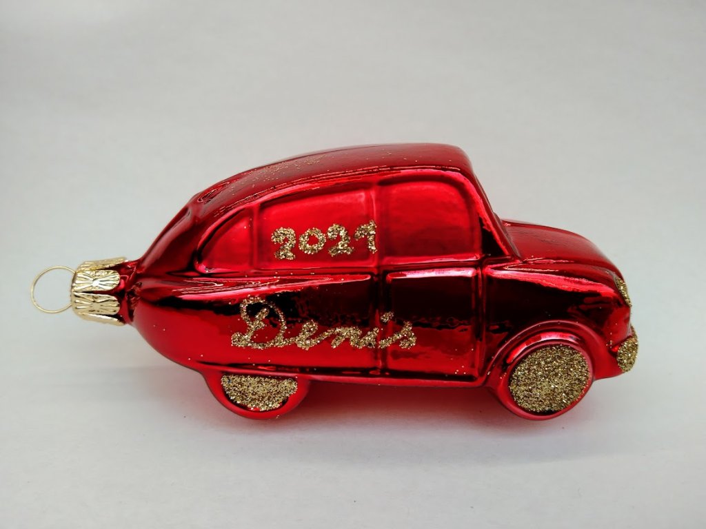 Vánoční ozdoba auto Tatraplán - skleněná vánoční ozdoba ve tvaru auta v červené barvě.