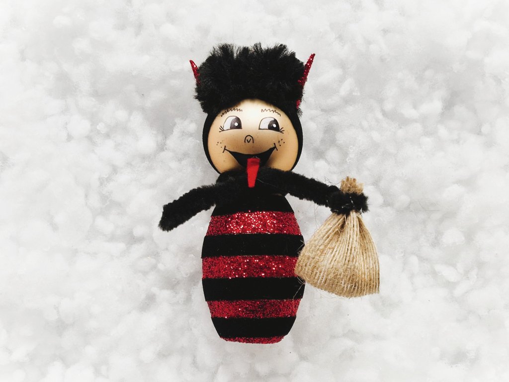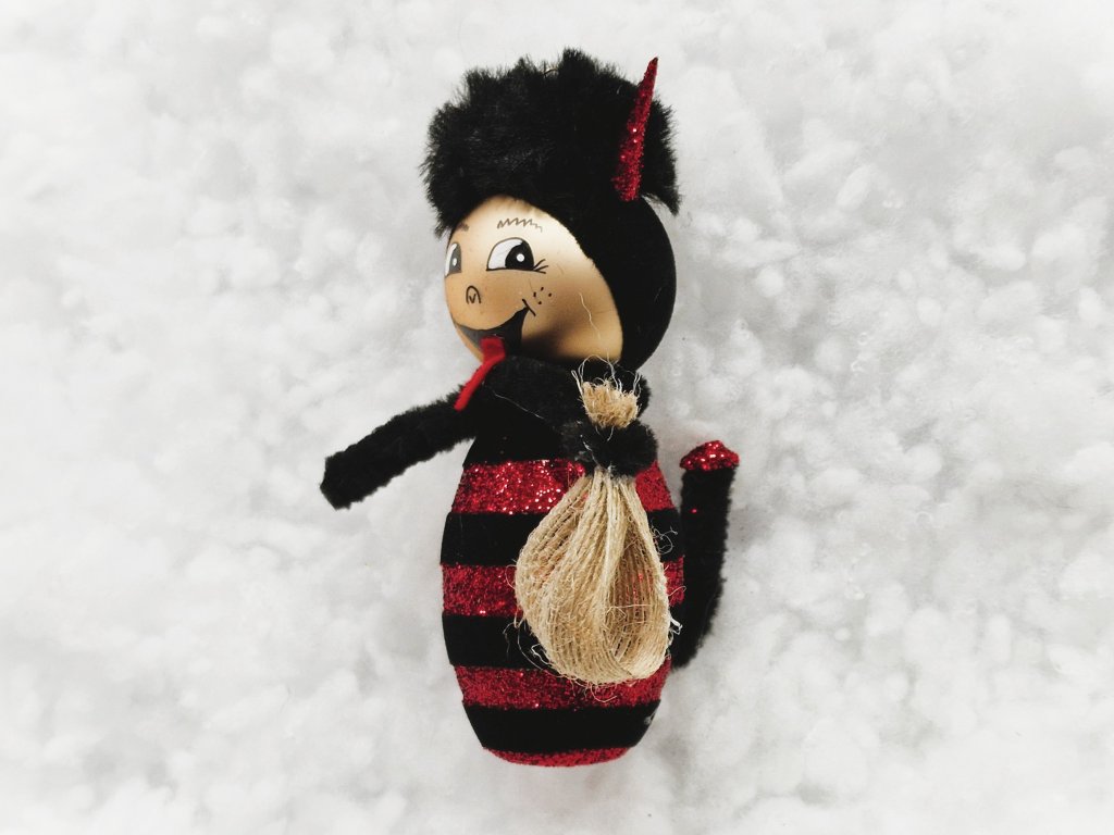 Vánoční ozdoba Čertík černo červený - skleněná vánoční ozdoba ve tvaru čerta.