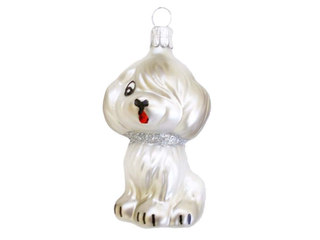 Vánoční ozdoba Pejsek stříbrný - skleněná vánoční ozdoba ve tvaru pejska.