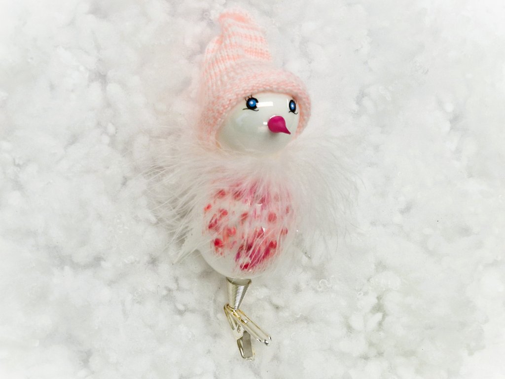 Vánoční ozdoba Ptáček s růžovou čepičkou