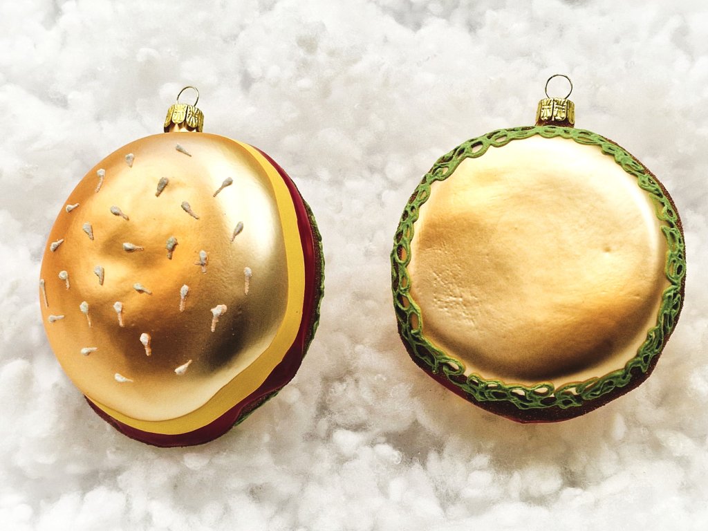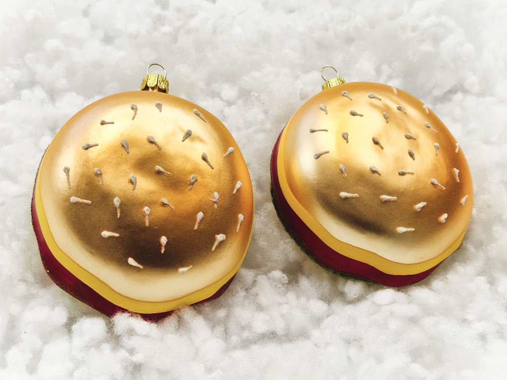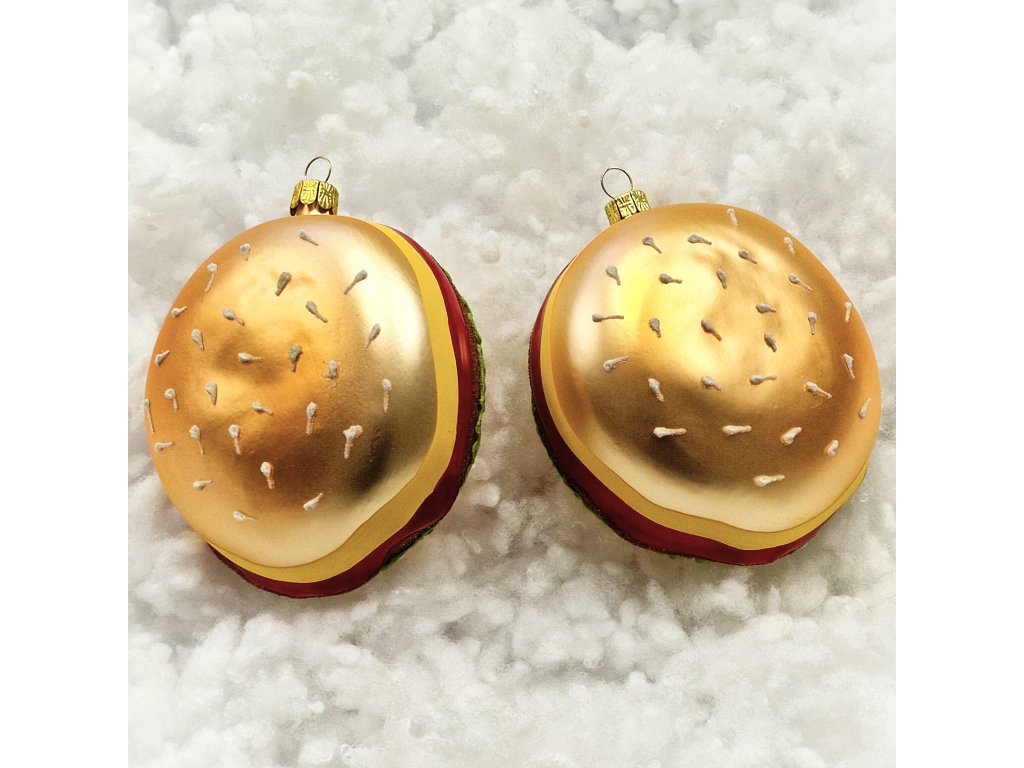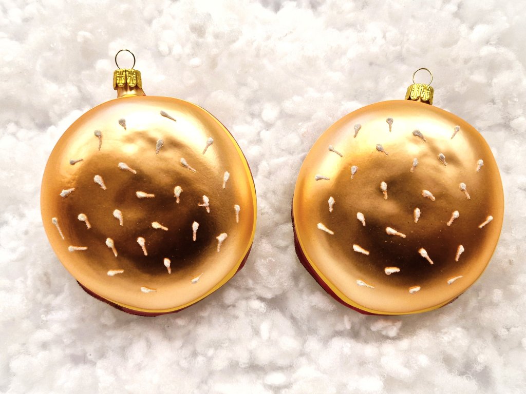 Sada vánočních ozdob Hamburger - skleněné vánoční ozdoby ve tvaru hamburgeru.