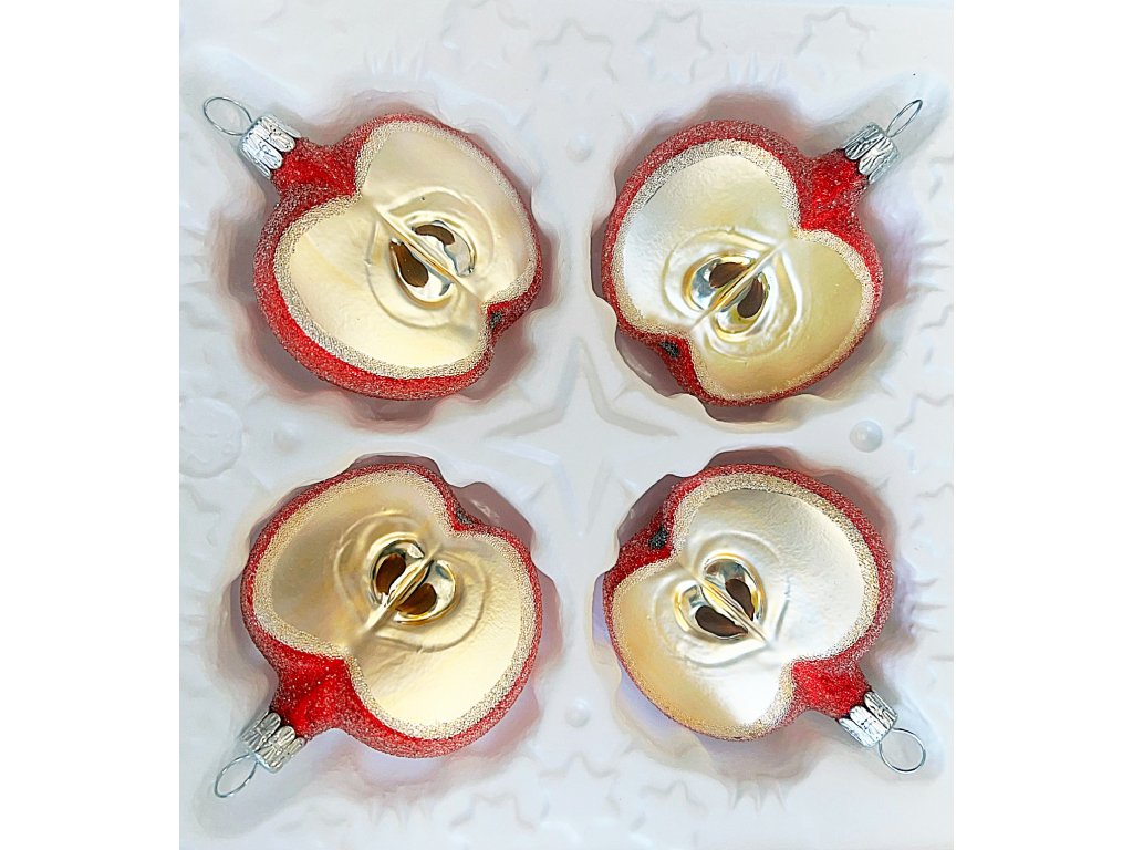 Sada vánočních ozdob Jablíčko červeno-zlaté rozkrojené - skleněná vánoční ozdoba ve tvaru jablíčka. Ozdoba na zavěšení.
