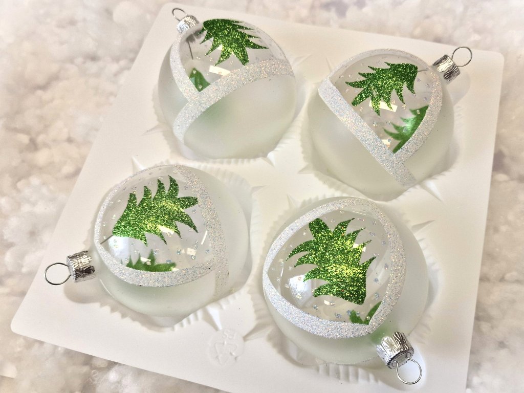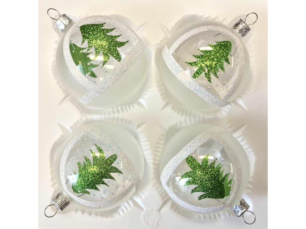 Vánoční ozdoby Koule bílá se zeleným stromkem - sada 4 ks