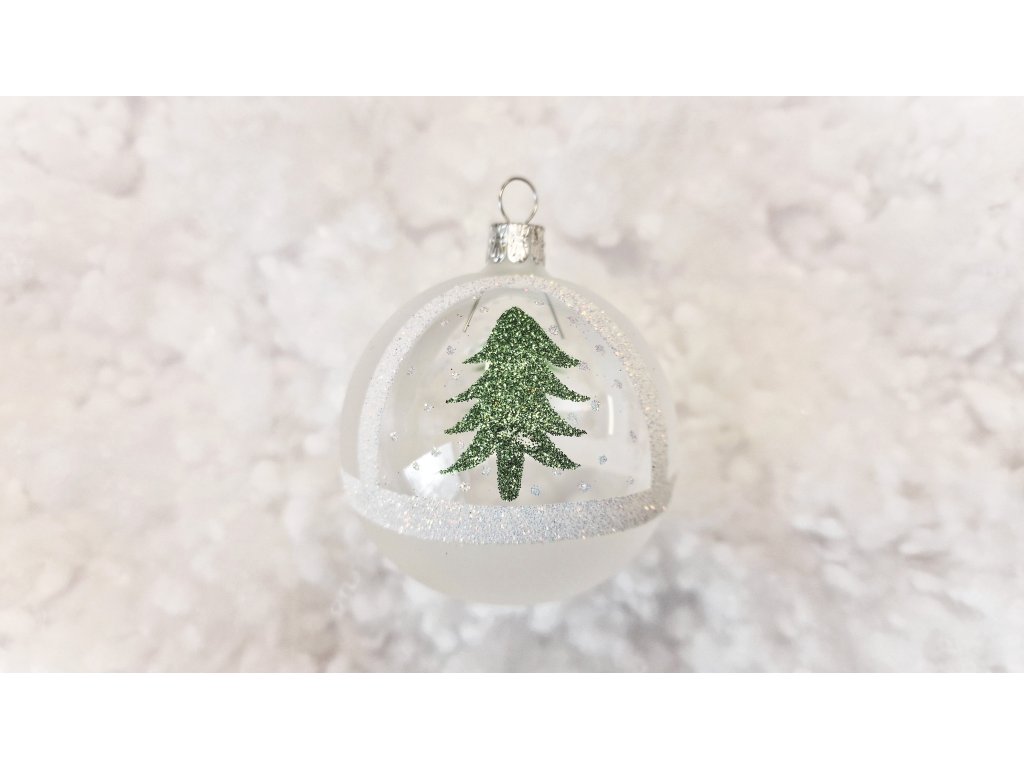 Sada vánočních ozdob Koule matná se zdobením a zeleným stromkem - skleněná vánoční ozdoba koule v matném provedení a stromečkem.