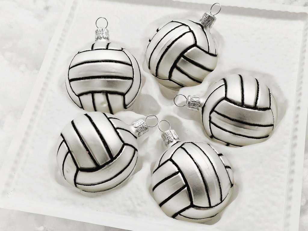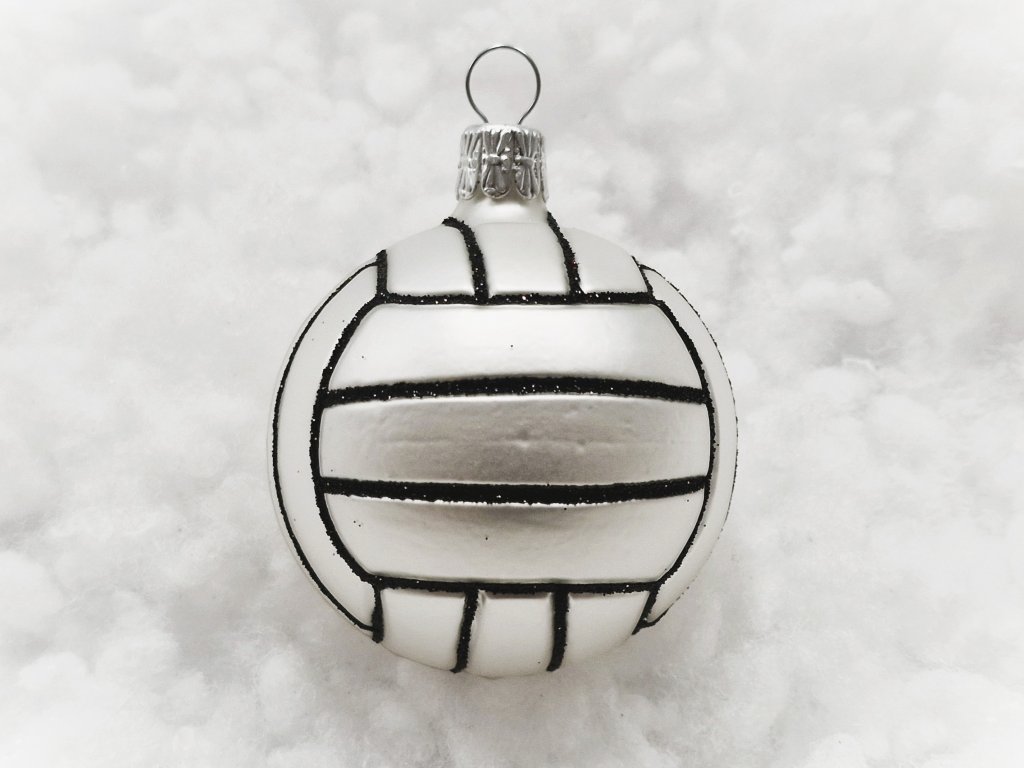 Sada vánočních ozdob Volejbalový míč - skleněná vánoční ozdoba, tvar balon (míč), na zavěšení. Ručně vyráběná skleněná vánoční ozdoba.